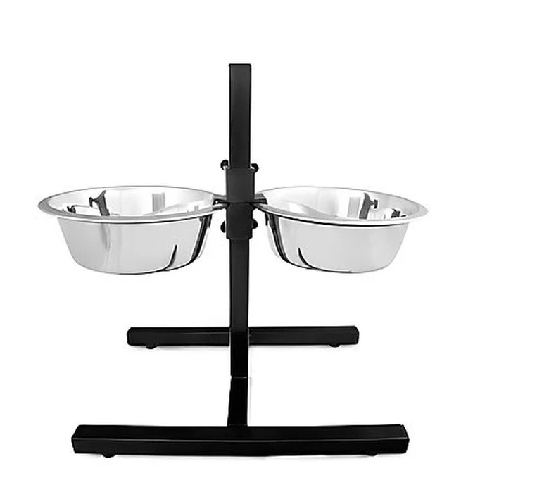 Support avec 2 gamelles en inox (croquettes et eau) réglable en hauteur pour s’adapter parfaitement à la taille de votre chien.