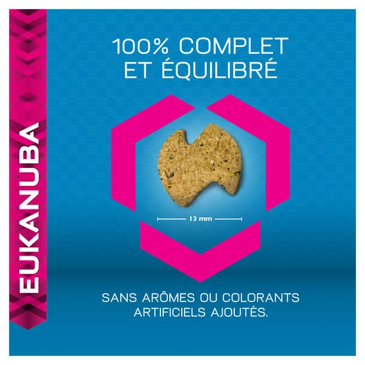 La meilleure alimentation Eukanuba pour chien mature et senior de toute race à la peau et l’estomac sensibles, riche en agneau. Formulées pour fournir une nutrition optimale, les croquettes pour chien Eukanuba Mature et Senior Toute Race riches en Agneau et Riz favorisent la santé digestive grâce à des prébiotiques et de la pulpe de betterave à l’efficacité cliniquement prouvée. L’alimentation canine Eukanuba contient des antioxydants à l’efficacité cliniquement prouvée qui aident à renforcer les défenses naturelles de votre chien ainsi qu’une quantité élevée d’acides gras oméga 3 et 6 qui favorisent une peau saine et un poil brillant. Aide également à réduire la perte des poils jusqu’à 80 %*. Contient également du calcium pour la solidité des os et des protéines d’origine animale de qualité supérieure (l’ingrédient principal étant le poulet), dont les tests cliniques ont prouvé qu’elles favorisaient le maintien d’une musculature forte et d’une masse graisseuse faible. Les prébiotiques et la pulpe de betterave à l’efficacité cliniquement prouvée contribuent à la santé digestive et optimisent l’absorption des substances nutritives. Recommandé par les plus grands éleveurs, ce produit a été développé en collaboration avec des vétérinaires afin d’offrir à votre chien une alimentation 100 % complète et équilibrée. Toute la gamme de croquettes pour chien mature et senior Eukanuba est formulée avec la technologie 3D DentaDefense qui nettoie à chaque repas, réduit l’accumulation du tartre jusqu’à 80 %* et permet à votre chien de garder des dents solides.* les résultats peuvent varier.