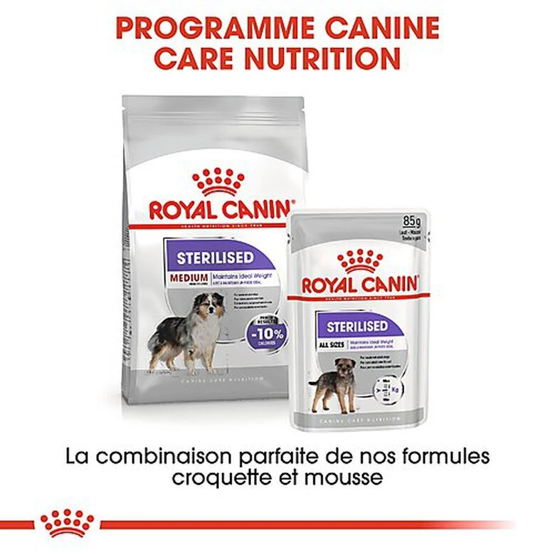MAINTIEN DU POIDS DE FORME : Après la stérilisation, les besoins énergétiques de votre chien diminuent et l’appétit peut augmenter, ce qui peut conduire à une prise de poids.